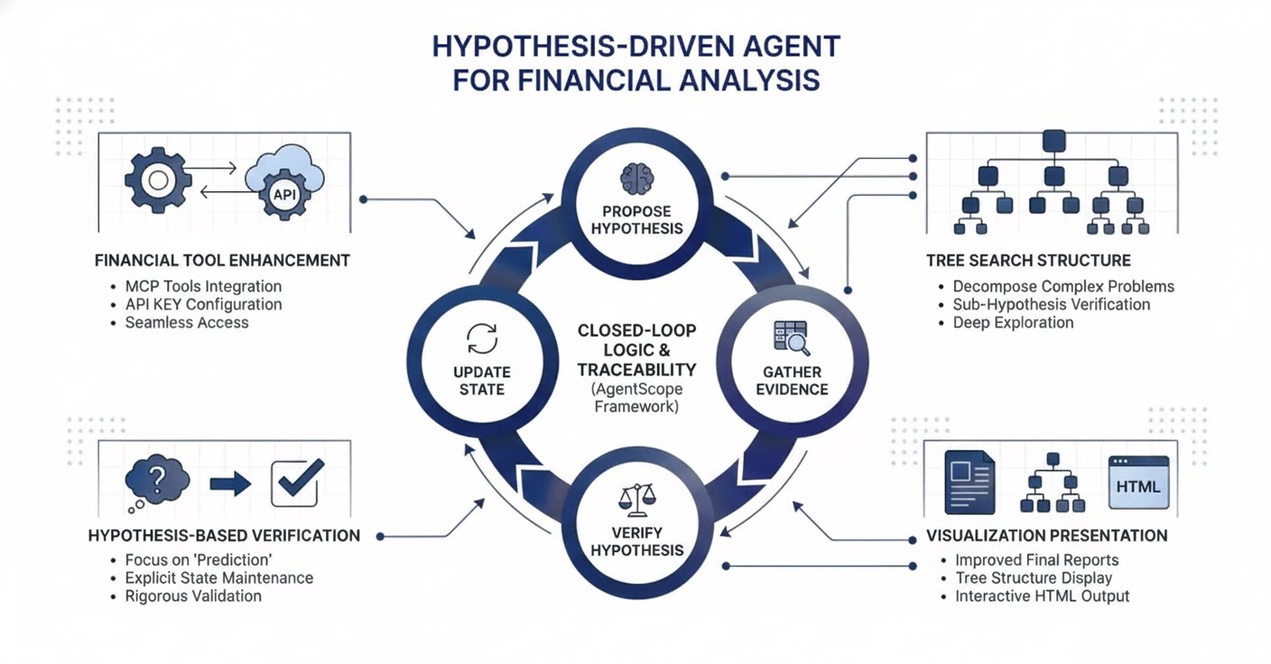 In high-stakes financial scenarios, simple task execution is insufficient. Alias-Finance Analysis introduces a state-aware reasoning mechanism designed for prediction and verification.- Dynamic State Maintenance: Instead of a linear to-do list, the agent maintains a “Hypothesis Task.”